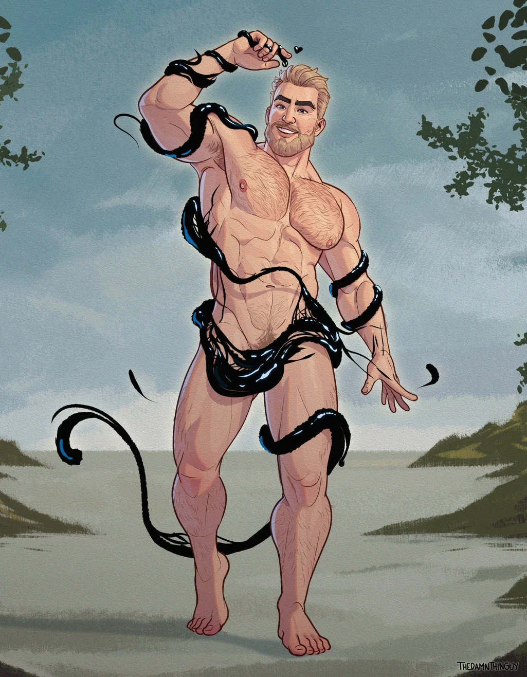 Birth of Venus inspired piece featuring Eddie Brock and Venom. Commissioned artwork.